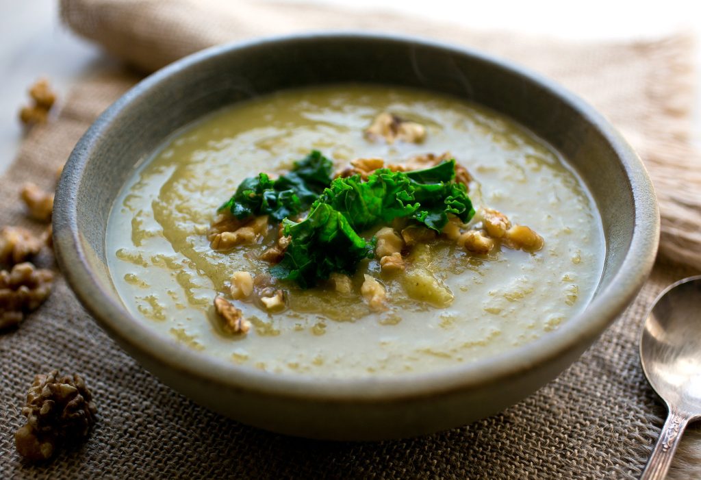6. Lastly, add in the chopped nuts, lime juice and parsley and serve the soup hot, we can also add boiled chicken cubes/ chopped boiled eggs, saute prawns etc to make it in a non-veg variation.
